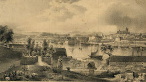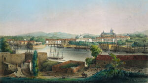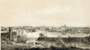 BAYONNE, au confluent de la Nive et de l'Adour(1), est une des villes les plus agréables et les plus animées du Midi. Sa population, de 18 000 âmes environ, n'est pas en rapport avec l'importance que lui donne sa position géographique. Son port est fort joli ; et quand, au soleil couchant, le voyageur, après avoir parcouru depuis Bordeaux ces landes sablonneuses et tristes, ces forêts de pins, ces champs de bruyères et de genêts, aperçoit, des hauteurs de Saint-Etienne, cette ville se reflétant dans les eaux, ce pont monumental qui la relie à Saint-Esprit, ces coteaux couverts d'arbres, de maisons de campagne, de jardins ; qu'il aperçoit ces mille plans sur lesquels l'œil de l'artiste se repose avec tant de charmes, et sur lesquels chatoie cette belle poussière d'or que jette le soleil à son déclin ; tout cela, terminé par un horizon de montagnes qui laisse voir, dans son atmosphère si chaude, le pic du Midi, couvert de neiges éternelles, le Mondarrain, la Rhune, les trois Couronnes, enfin Aizquivel qui se perd dans l'Océan, il est impatient de connaître la reine de cette riante contrée.