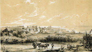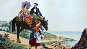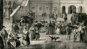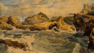 C'est à la porte d'Espagne qu'un service régulier de voitures est établi; retenons nos places au bureau. Nous avons encore quelques instants à attendre, profitons-en, si vous voulez, pour aller jusqu'aux glacis ; la voiture nous prendra sur la route. […] Tout en causant, nous voici arrivés au pied de la croix : en face, la route d'Espagne; à gauche, celle de Cambo et le champ de manœuvre; à droite, les glacis. […] Nous sommes au terme de notre voyage, abîmés de poussière à la vérité, mais à Biarrits. Traversons la place et gagnons le Port-Vieux; chemin faisant, je vous dirai ce qu'était autrefois Biarrits.