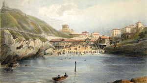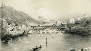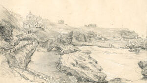 Si vous êtes reposé, allons voir la Roche percée. Modérez votre impatience. Ce rocher ne manque pas de caractère, n'est-ce pas? et ce gouffre est effrayant. Ces détonations qui se succèdent et ces vagues qui s'élèvent à quelques mètres de hauteur, doivent vous inspirer de la crainte ? Vous avez raison; n'avancez pas trop près. J'ai été mouillé plusieurs fois, et j'ai vu un de mes amis sur le point d'être enlevé du rocher par la lame. Soyez donc prudent. Maintenant, traversons l’Atalaye, et suivons cette rampe qui conduit à ce petit port où ces cabastans, ces embarcations à sec, résument l'industrie des marins de Biarrits en hiver. Parcourons ces rochers. Mais, chut! nous dérangeons quelqu'un. En effet, deux jeunes personnes achèvent leur toilette de bain. Où vont-elles donc? A la Chinaougue, la baignoire des enfants et des vieillards. […]