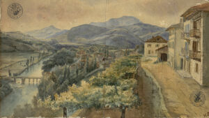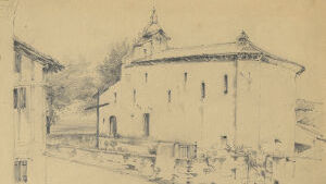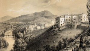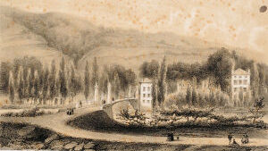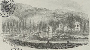 Le cocher s'est rafraîchi. Nous avons à gravir la côte de Cambo; elle est très-fatigante, c'est pour cela que nous avons fait une petite halte. Mais le bruit du fouet nous annonce l'arrivée à notre destination; cette allée couverte nous conduit à Cambo.