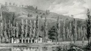 L'établissement des bains est heureusement placé au bord de la Nive. Sa forme particulière, qui lui donne une certaine ressemblance avec un petit temple, contraste singulièrement avec le site qui l'avoisine. Onze cabinets occupent le pourtour d'une demi-rotonde; la fontaine d'eau sulfureuse est en face de la rivière, sous une galerie. On raconte que la veille de la saint Jean, à minuit, bon nombre de Basques et de Basquaises des alentours, viennent aux deux sources minérales faire provision de santé.