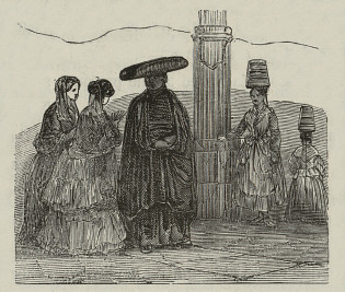 II y a beaucoup de vie et de mouvement dans cette petite ville de 4 000 âmes. Le passage de la grande route et le bureau des douanes lui donnent une certaine importance. Remarquez ces groupes de jeunes filles aux longues tresses; ce prêtre avec son immense chapeau roulé sur les côtés et dont la forme est monumentale; ces dames coiffées de la gracieuse mantille que nous retrouverons souvent dans l'intérieur de l'Espagne : il y a tout un monde d'Irun à Béhobie.