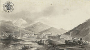 Vue de l'établissement thermal de Cambo, prise de la nouvelle route d'Hasparren