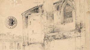 Affiche-calendrier de l'année 1890, Bayonne le marché aux grains en 1800 et 1890