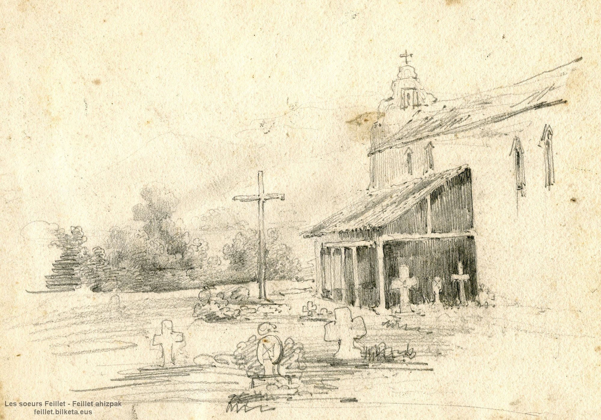 Les paysages réalisés au crayon par les sœurs Feillet sont souvent des œuvres inachevées, des esquisses, ou des essais.